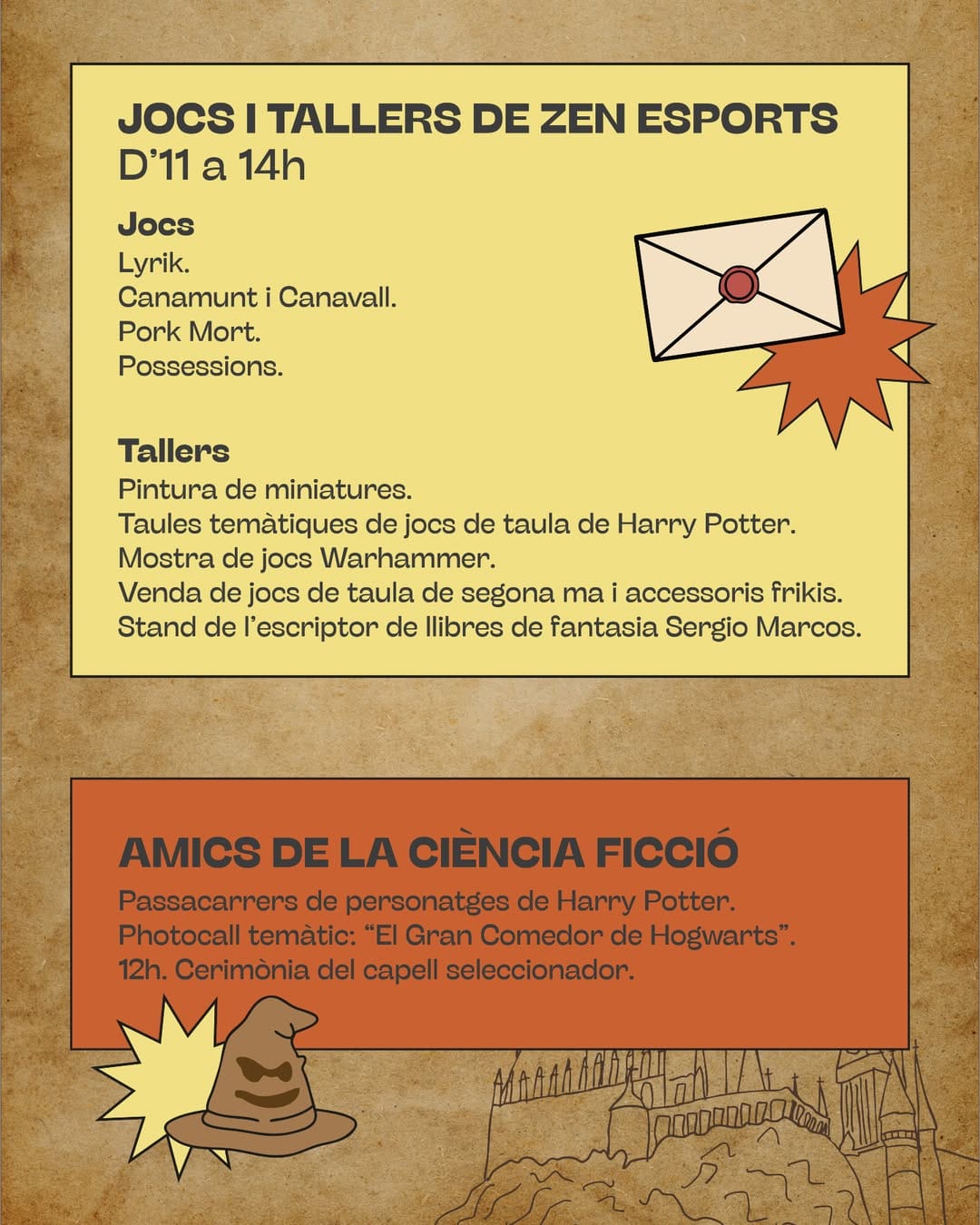 With @juegosdemesamarratxi and Zen Esports: Harry Potter–themed board games, Warhammer demos, miniature painting, role-playing sessions, and second-hand games for sale.