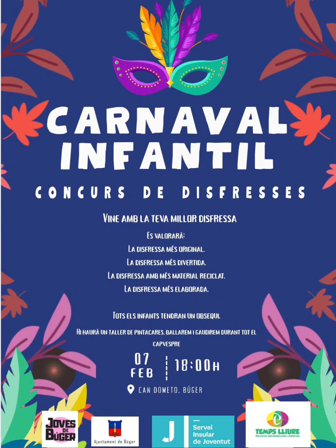 • Kids Carnival PartySat 7 Feb · 18:00 · Can Dometo (costume contest + face painting + games)