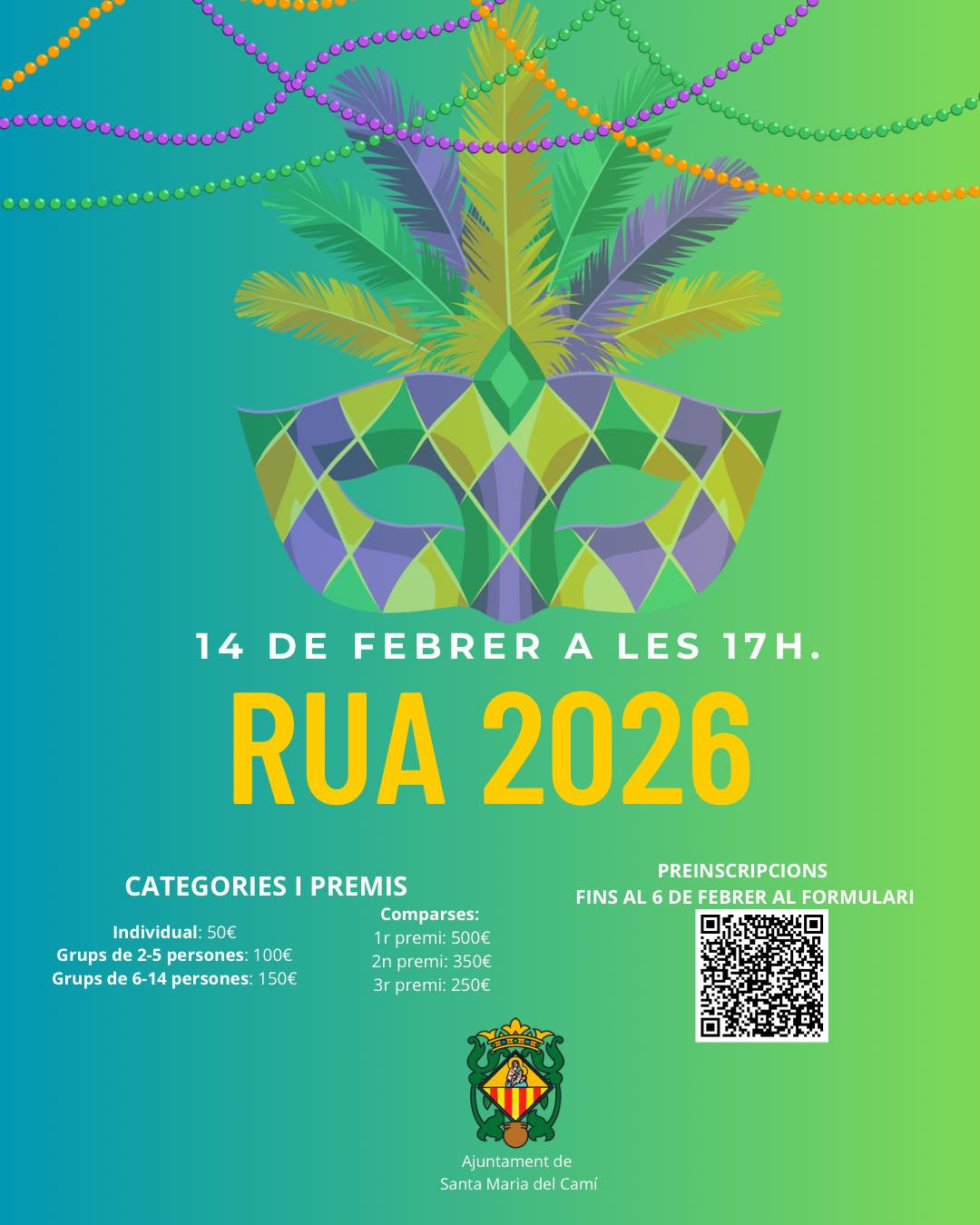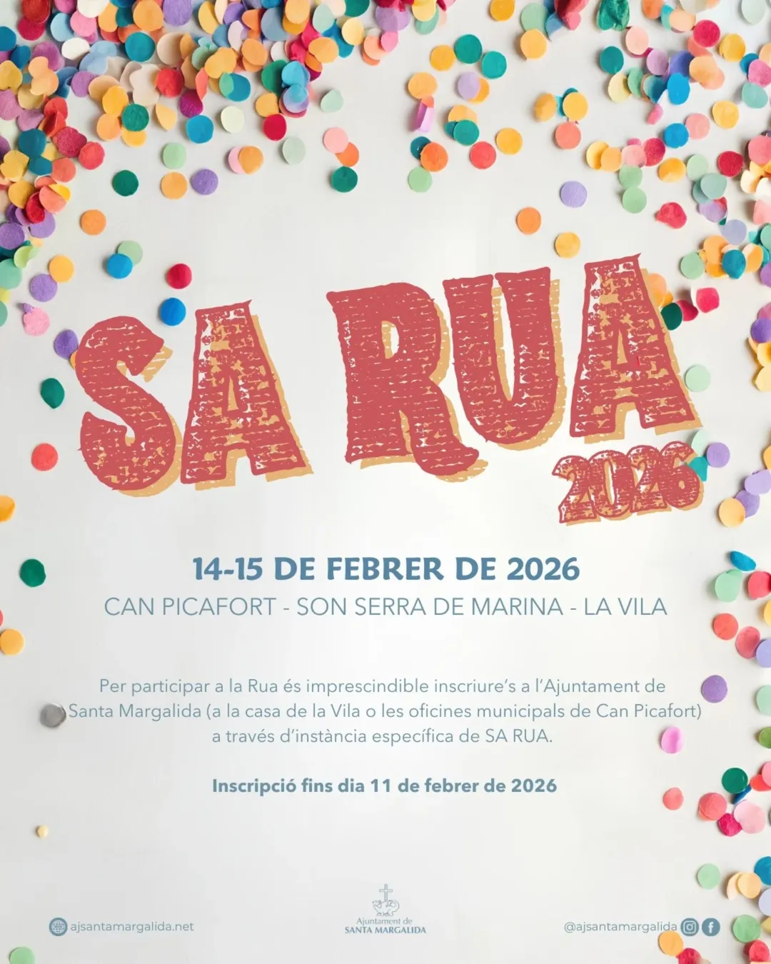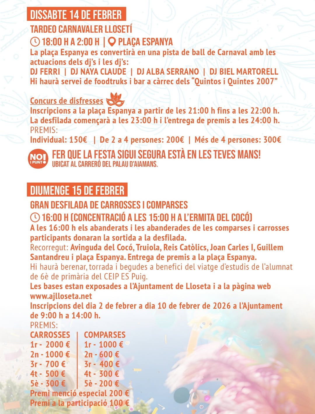 • Sa RuaSat 14 Feb · 15:30 (concentrations from 14:45) · party tent at Plaça de l’Estació with DJs and prize-giving