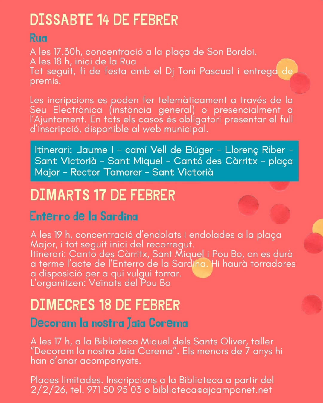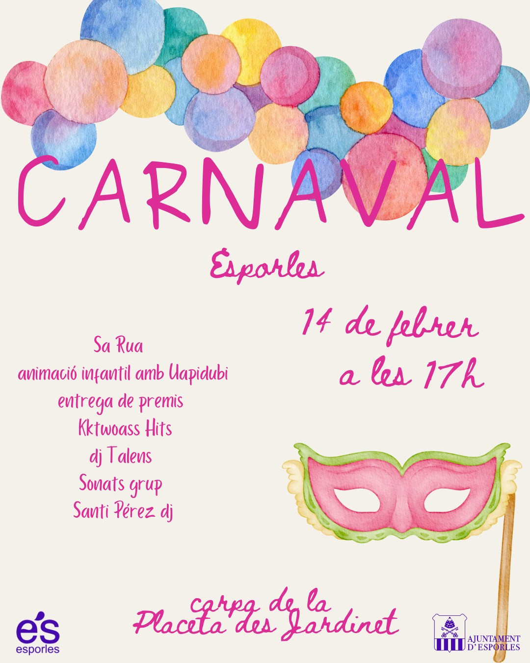 • Sa RuaSat 14 Feb · 17:00 + kids animation, prizes and tardeo afterwards (carpa at Placeta des Jardinet)