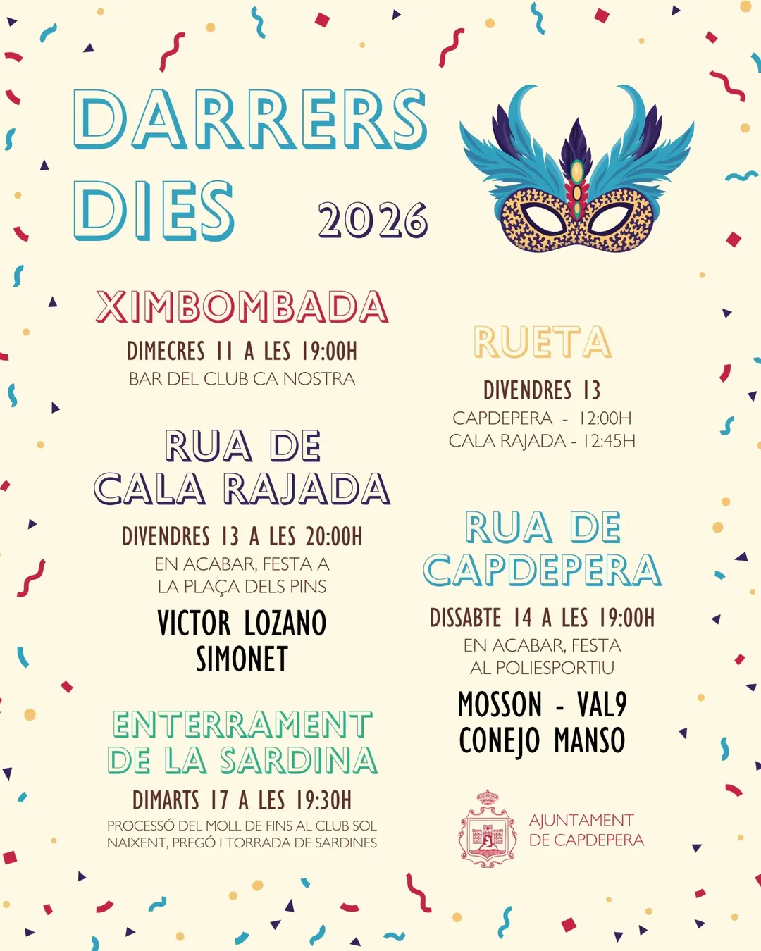 • Sat 14 Feb · 19:00 Rua Capdepera + party (Poliesportiu)