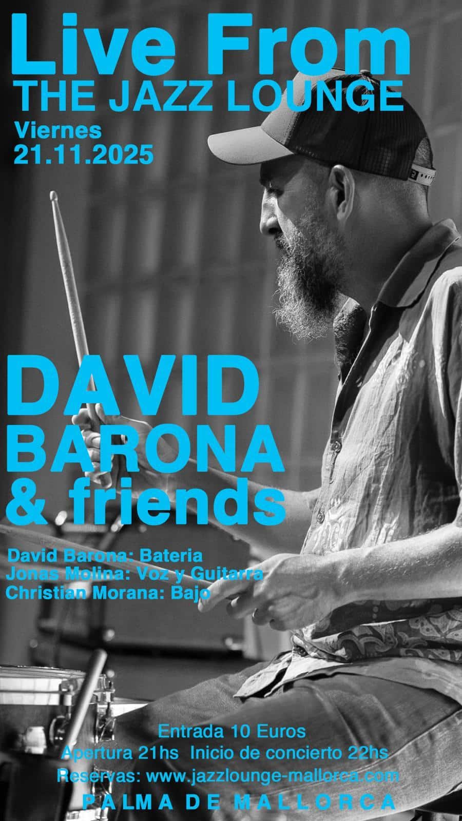 This Friday, November 21, The Jazz Lounge by Florencio Cruz hosts David Barona & Friends, a vibrant trio bringing an energetic mix of jazz, soul, and contemporary groove to the heart of Palma.