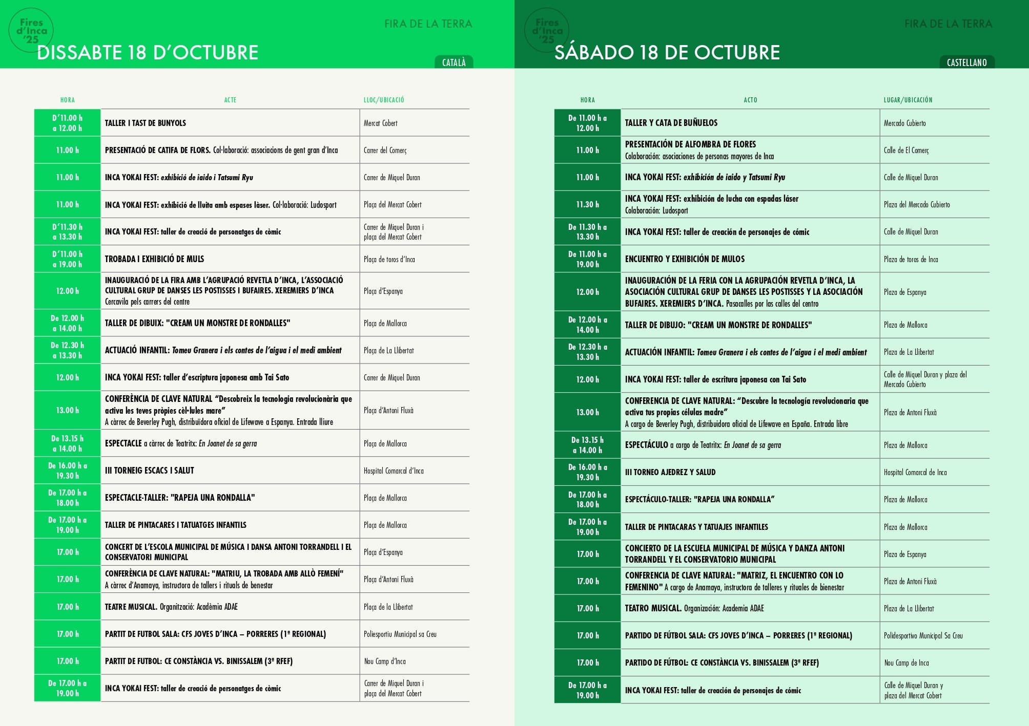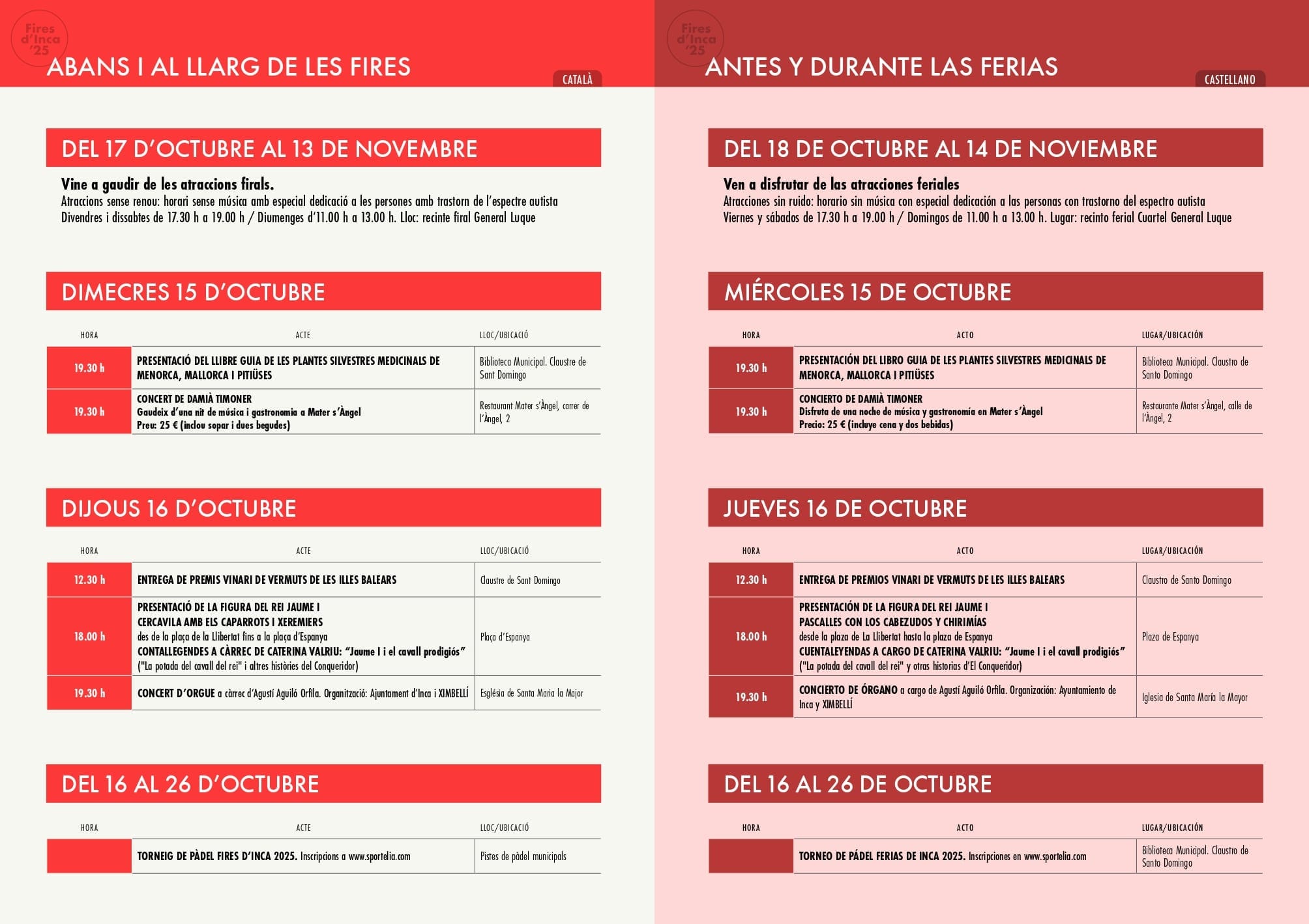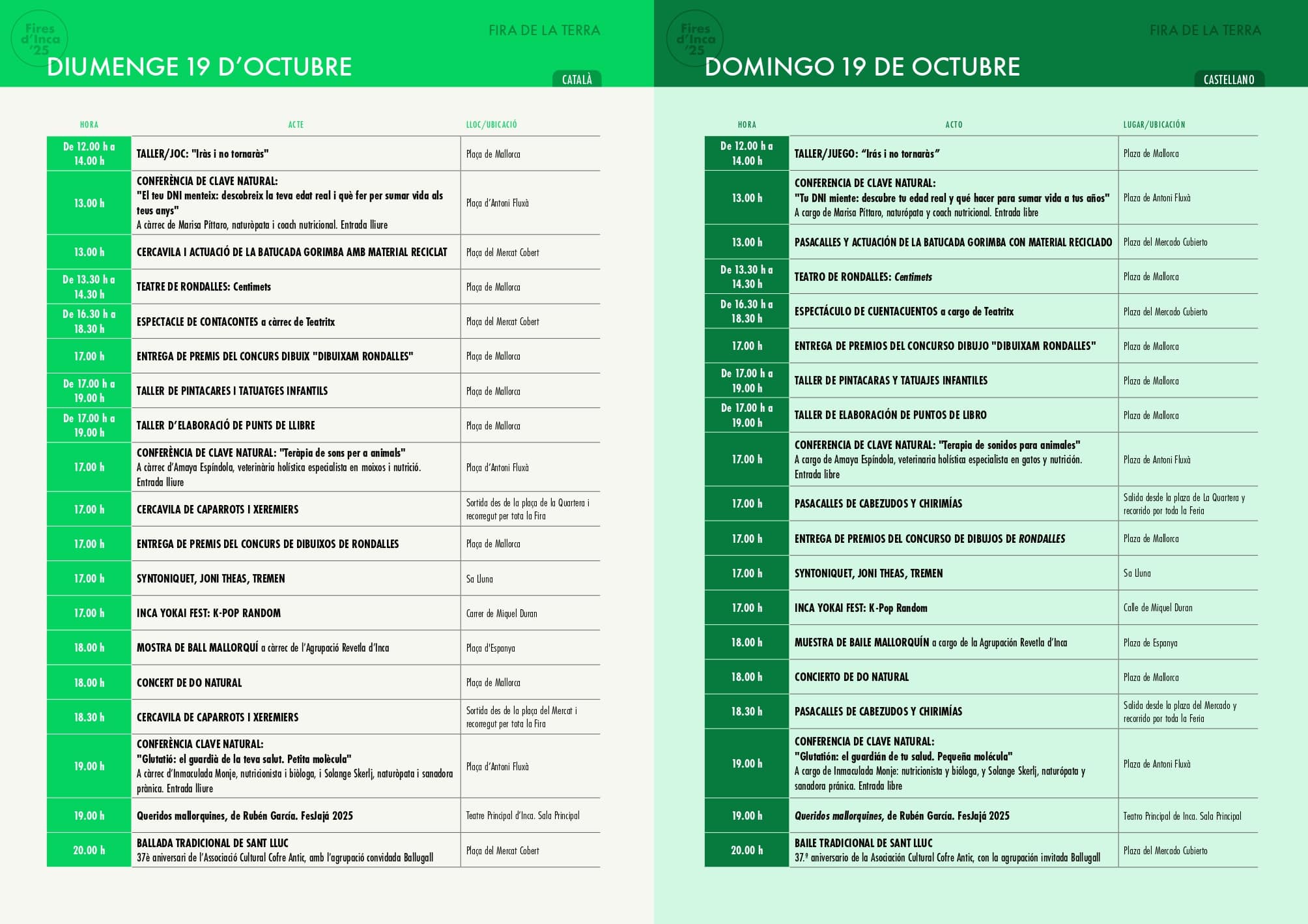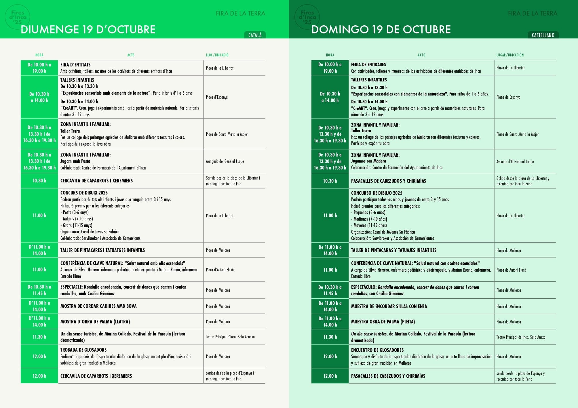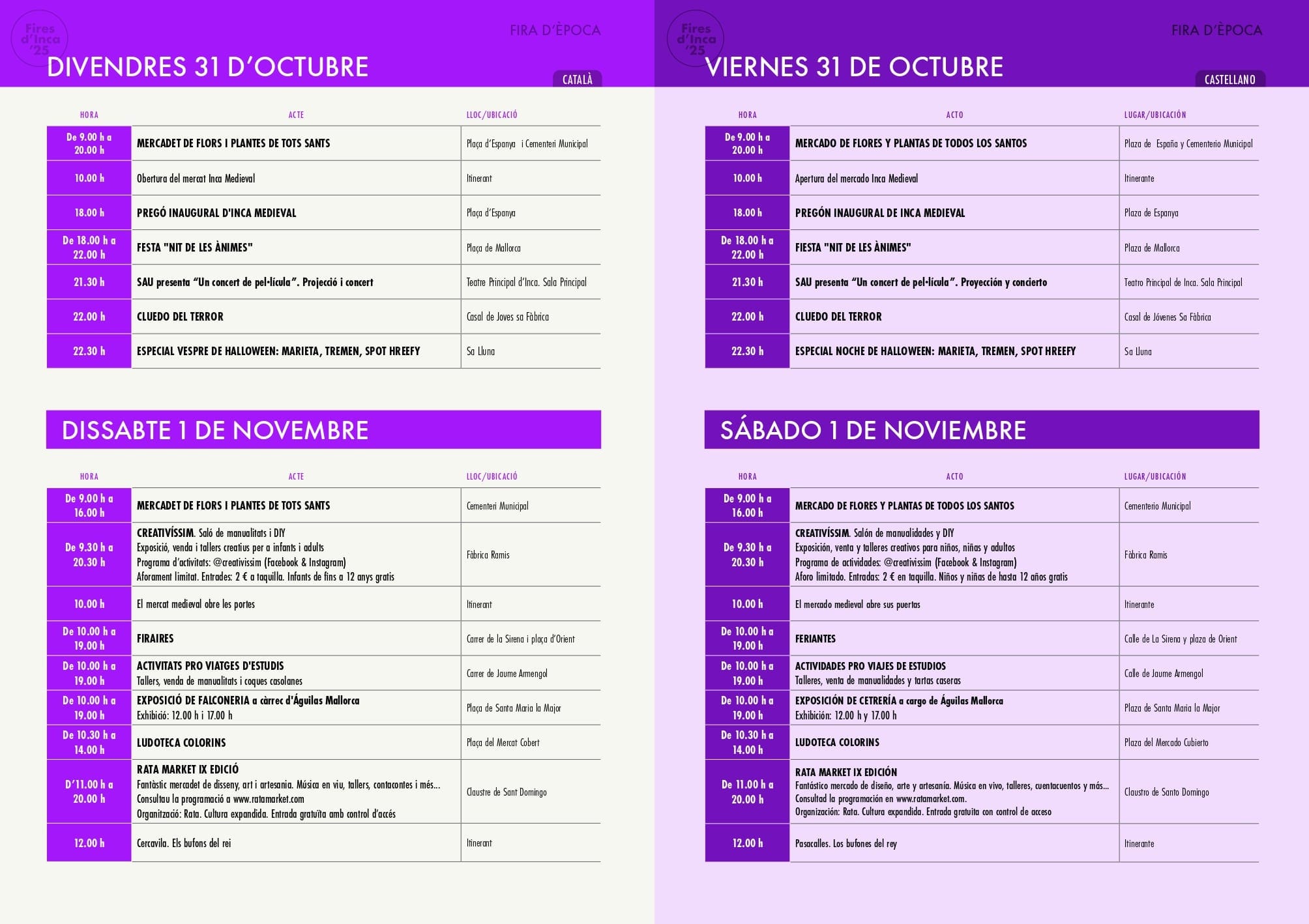 Please note the schedule is subject to change due to weather or unforeseen circumstances – please check the Ajuntament d’Inca’s Instagram or official website for the latest updates.