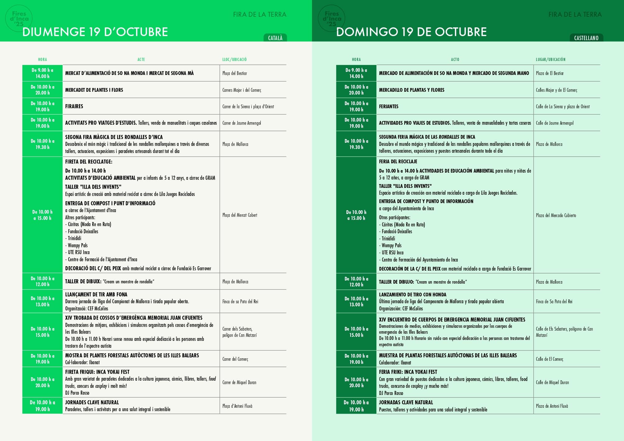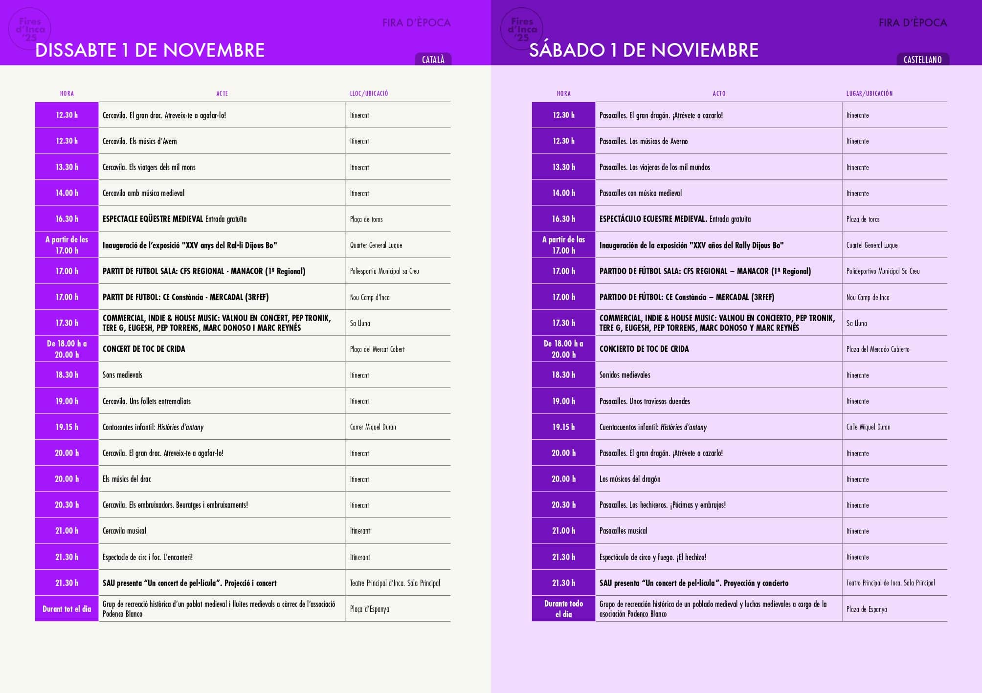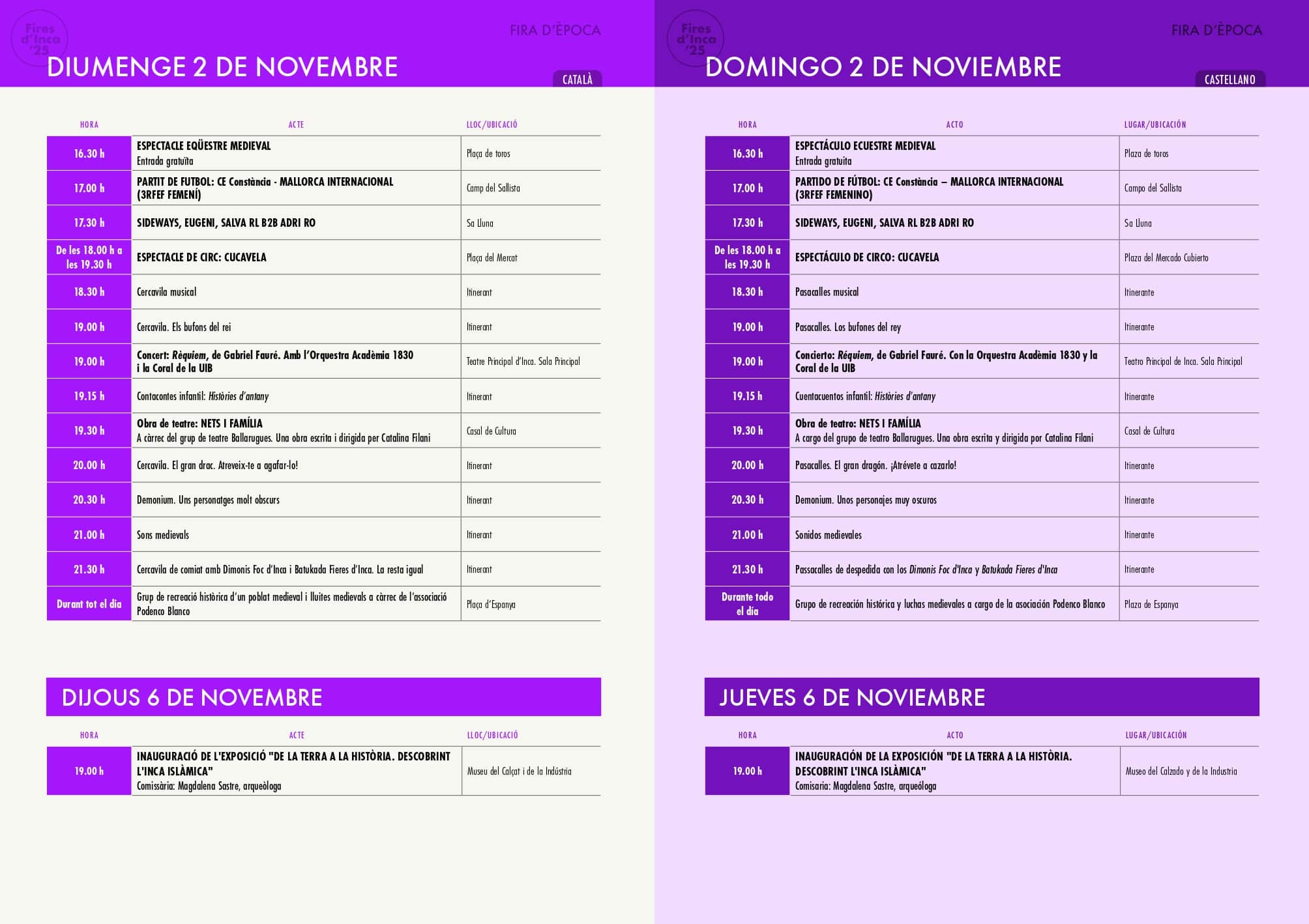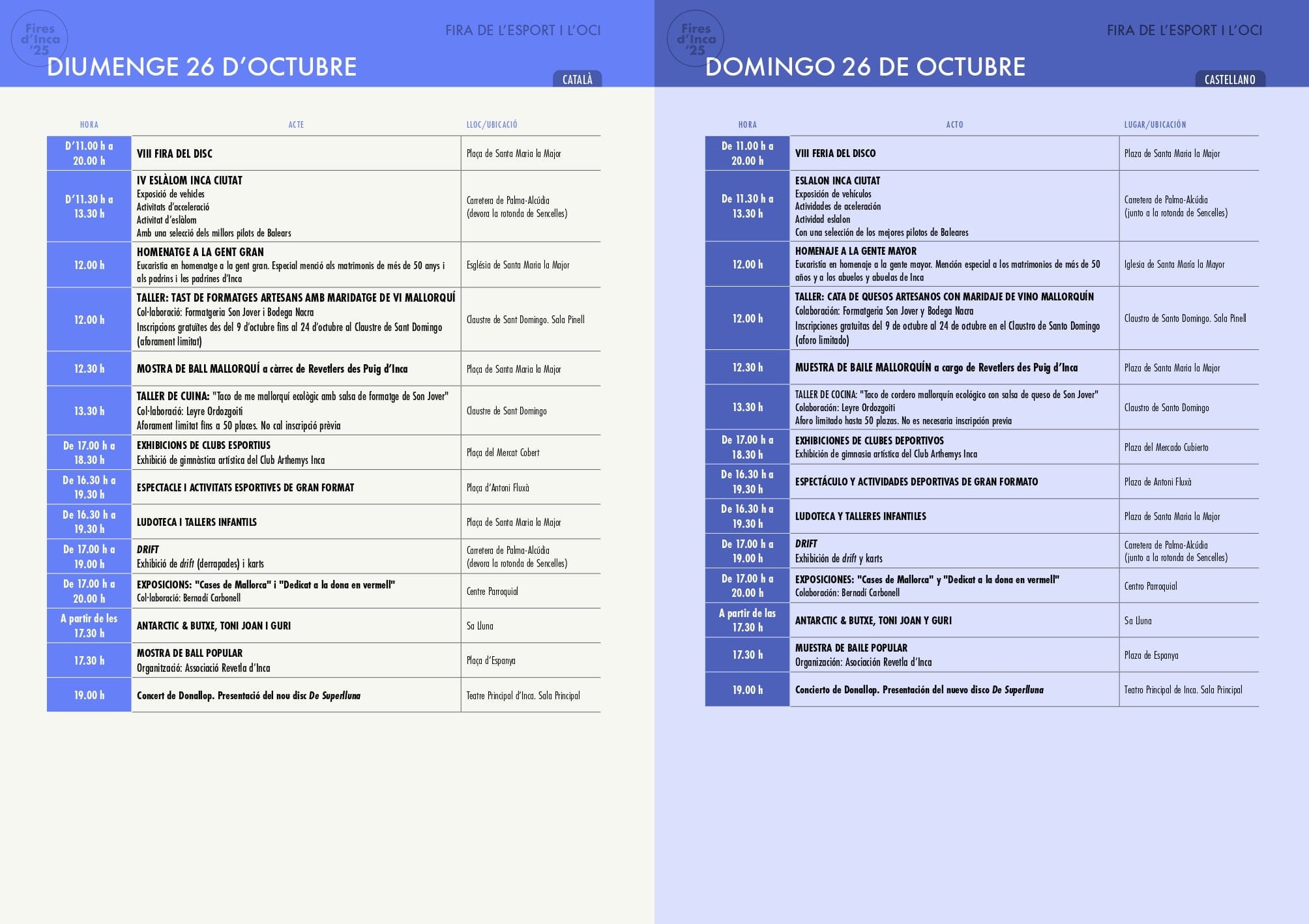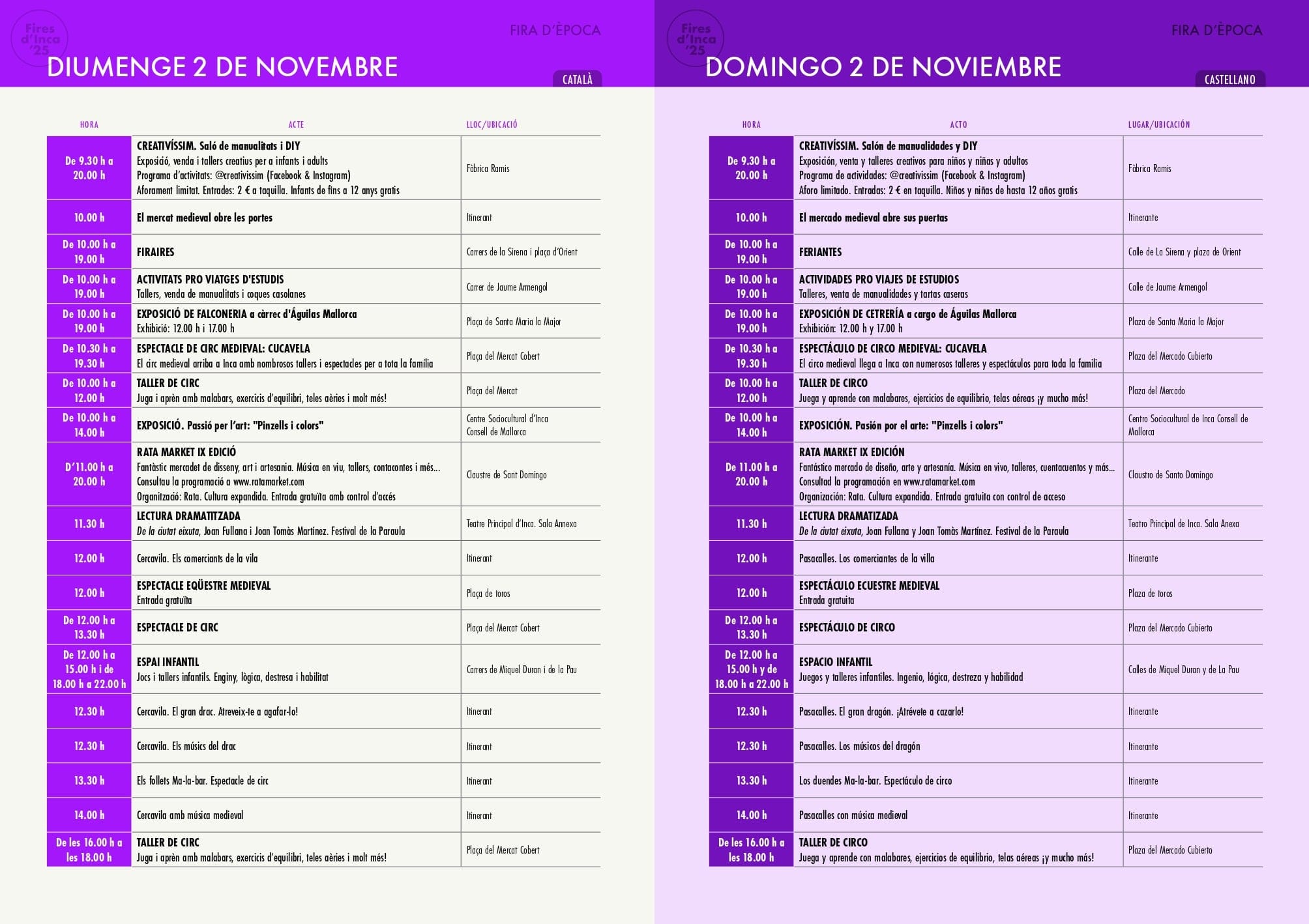 Please note the schedule is subject to change due to weather or unforeseen circumstances – please check the Ajuntament d’Inca’s Instagram or official website for the latest updates.