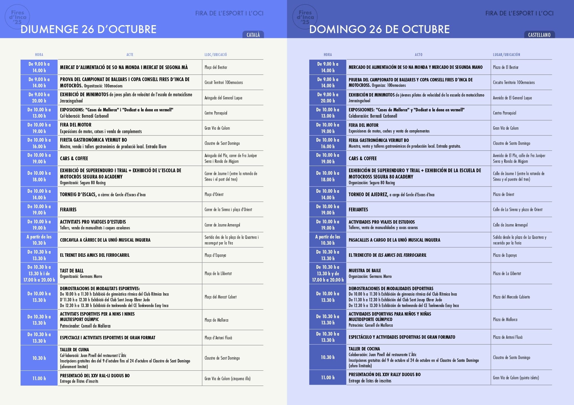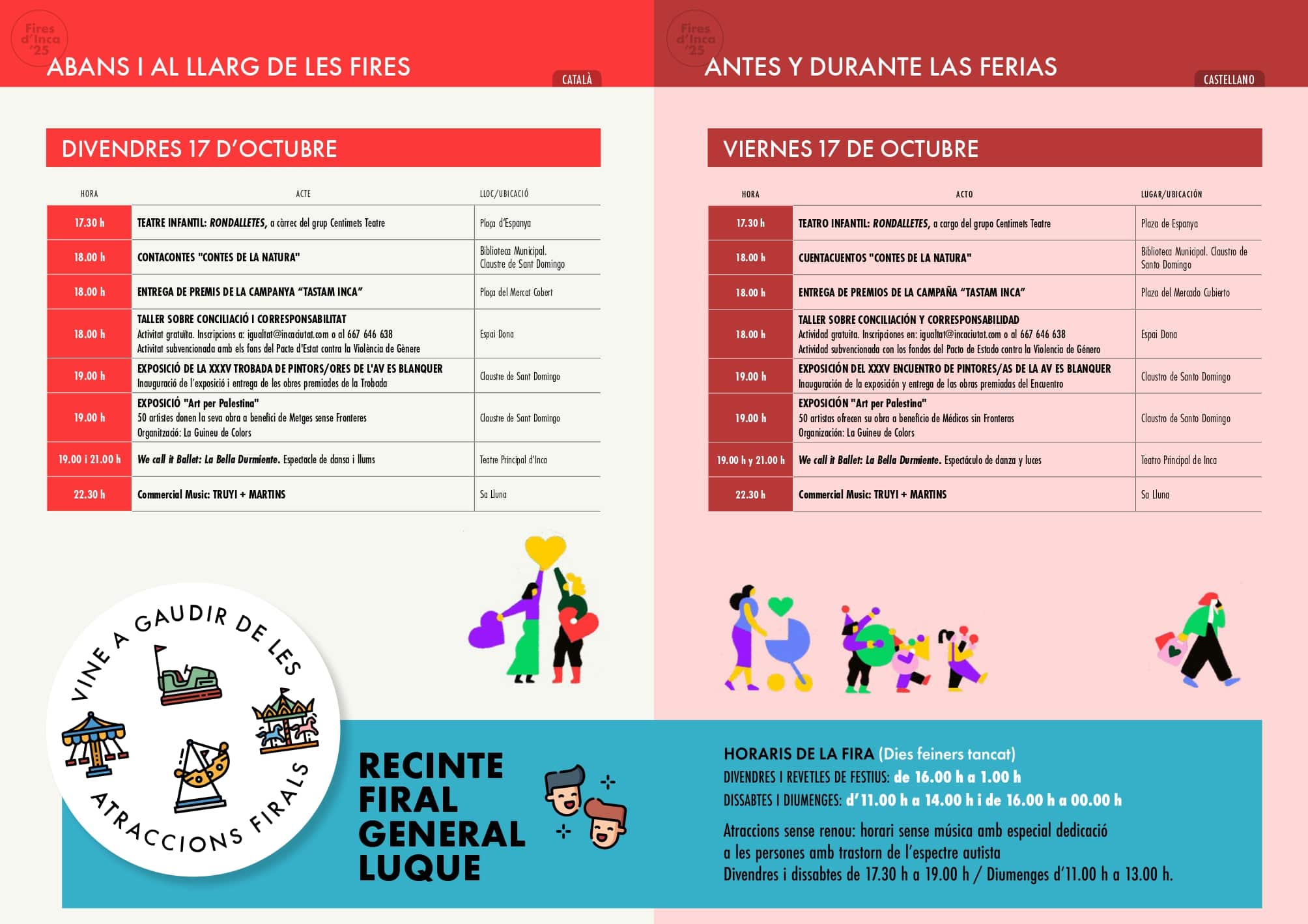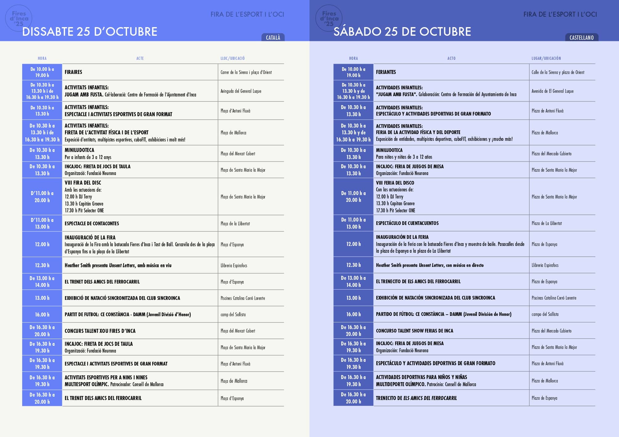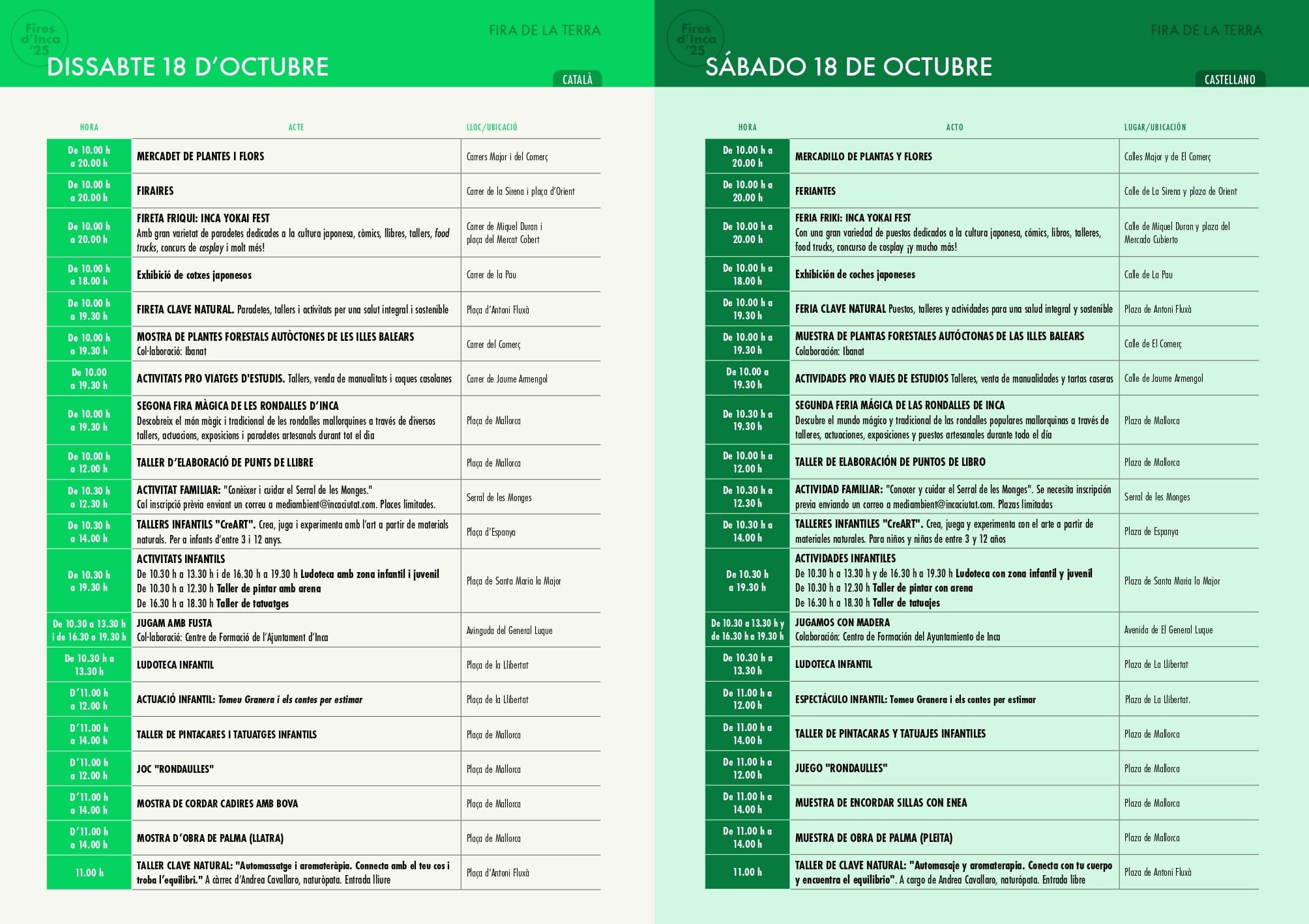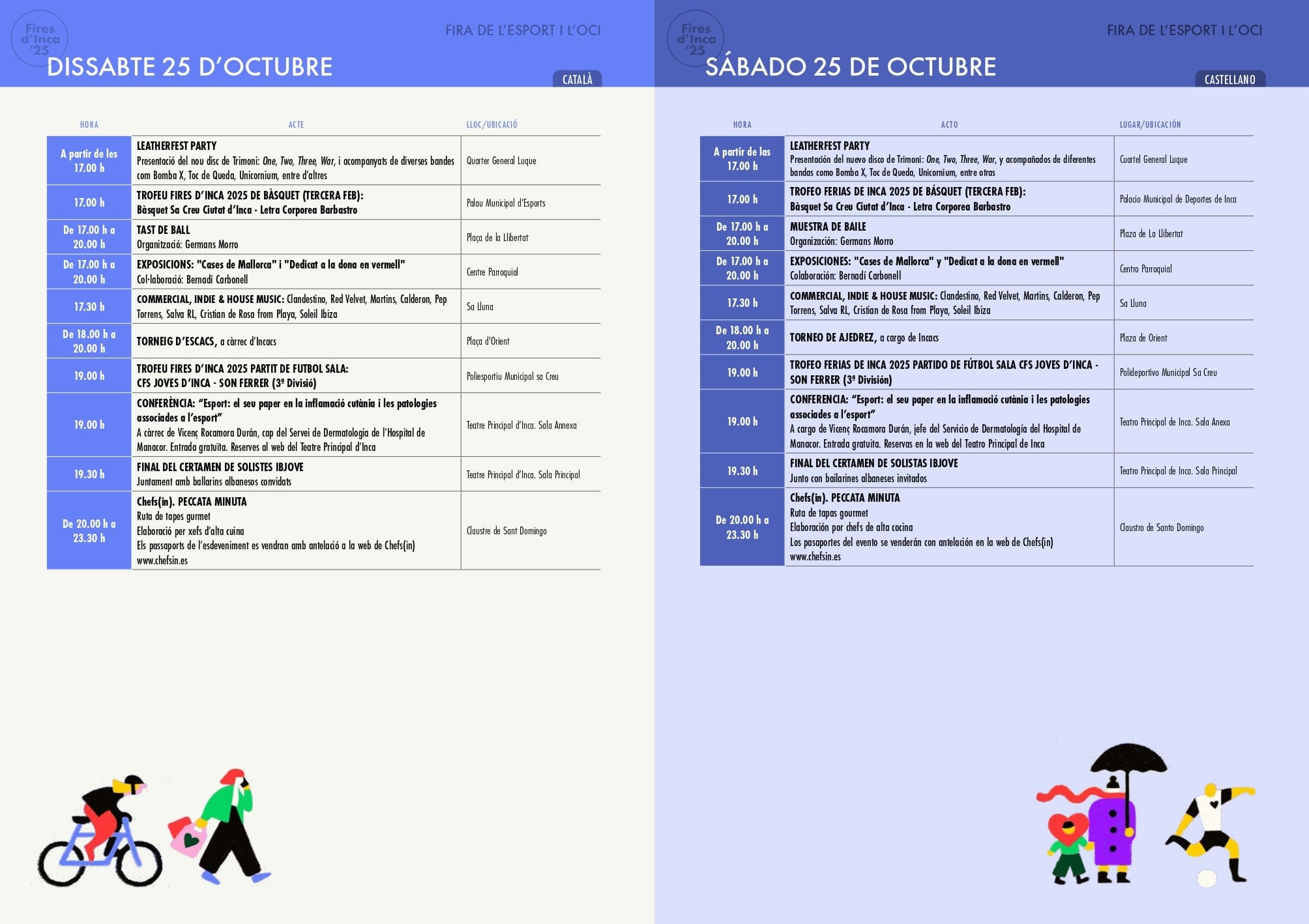 Please note the schedule is subject to change due to weather or unforeseen circumstances – please check the Ajuntament d’Inca’s Instagram or official website for the latest updates.