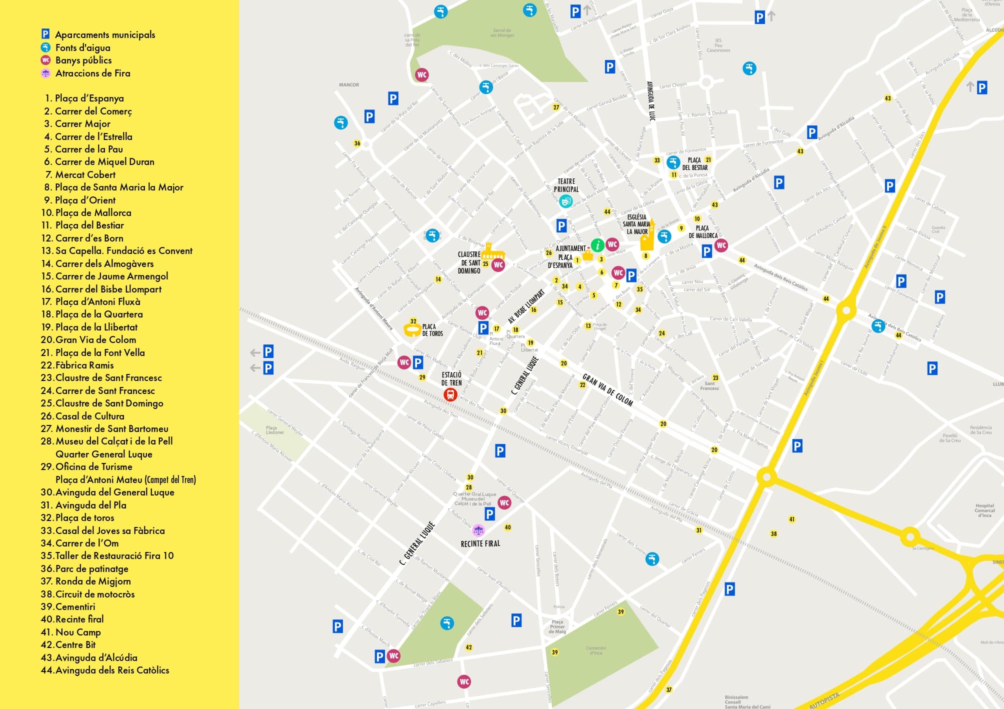 - Locations concentrate around Plaça d’Espanya, Plaça de Mallorca, Claustre de Sant Domingo, Cuartel General Luque, and surrounding streets.