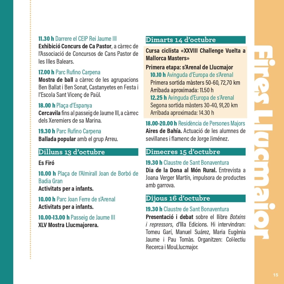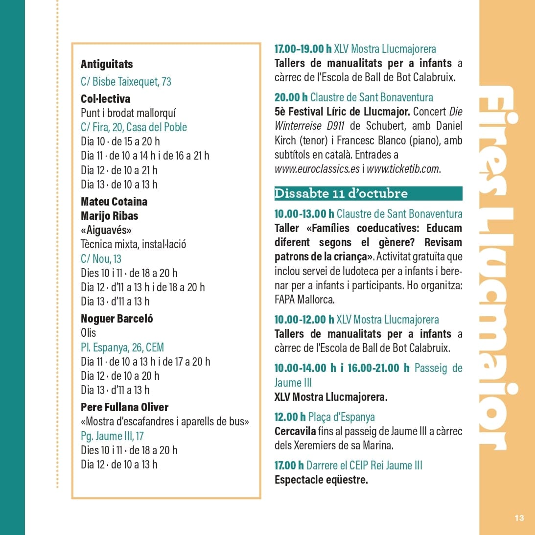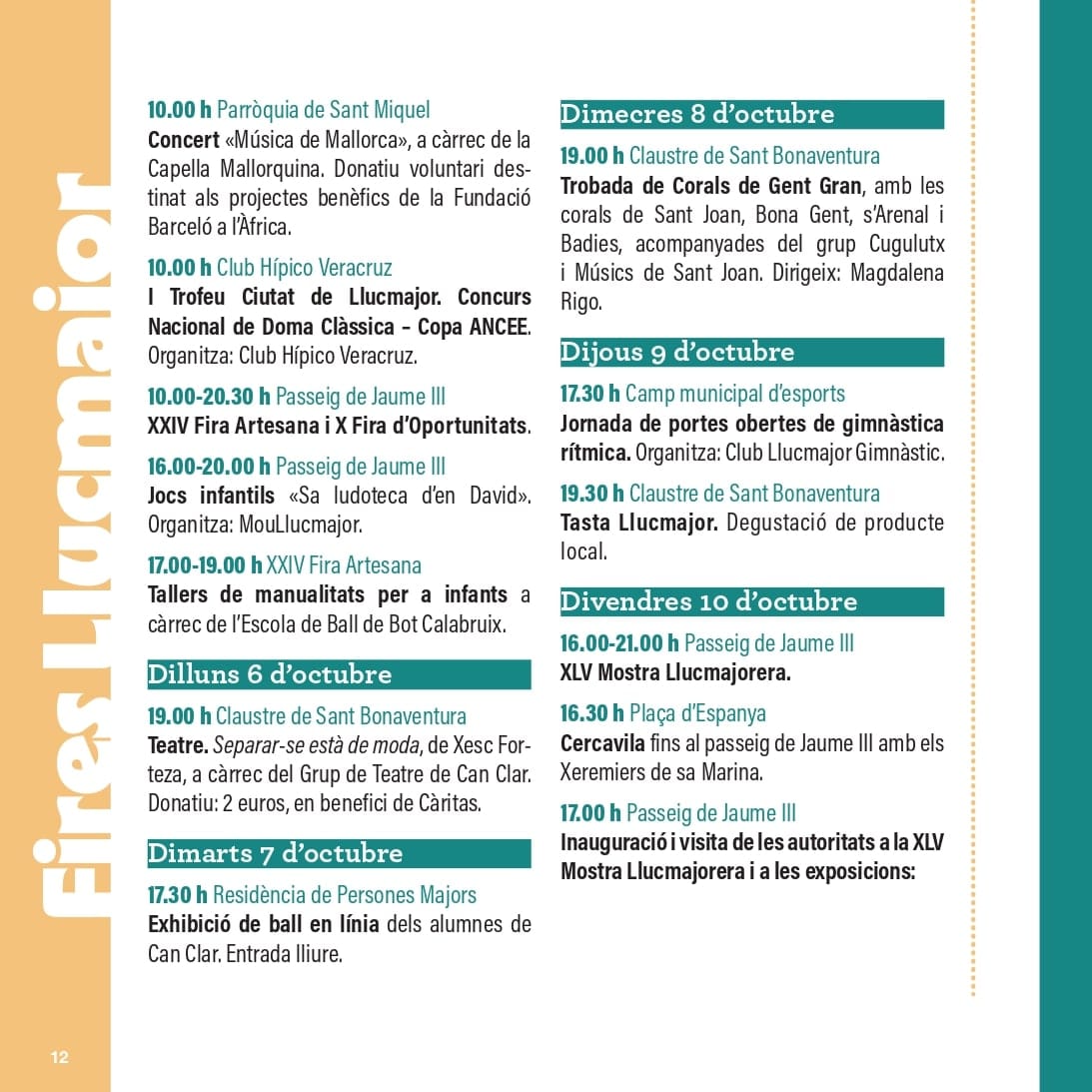 - Fri 10 – Sun 12 Oct – XLV Mostra Llucmajorera (exhibitions, tastings, workshops)