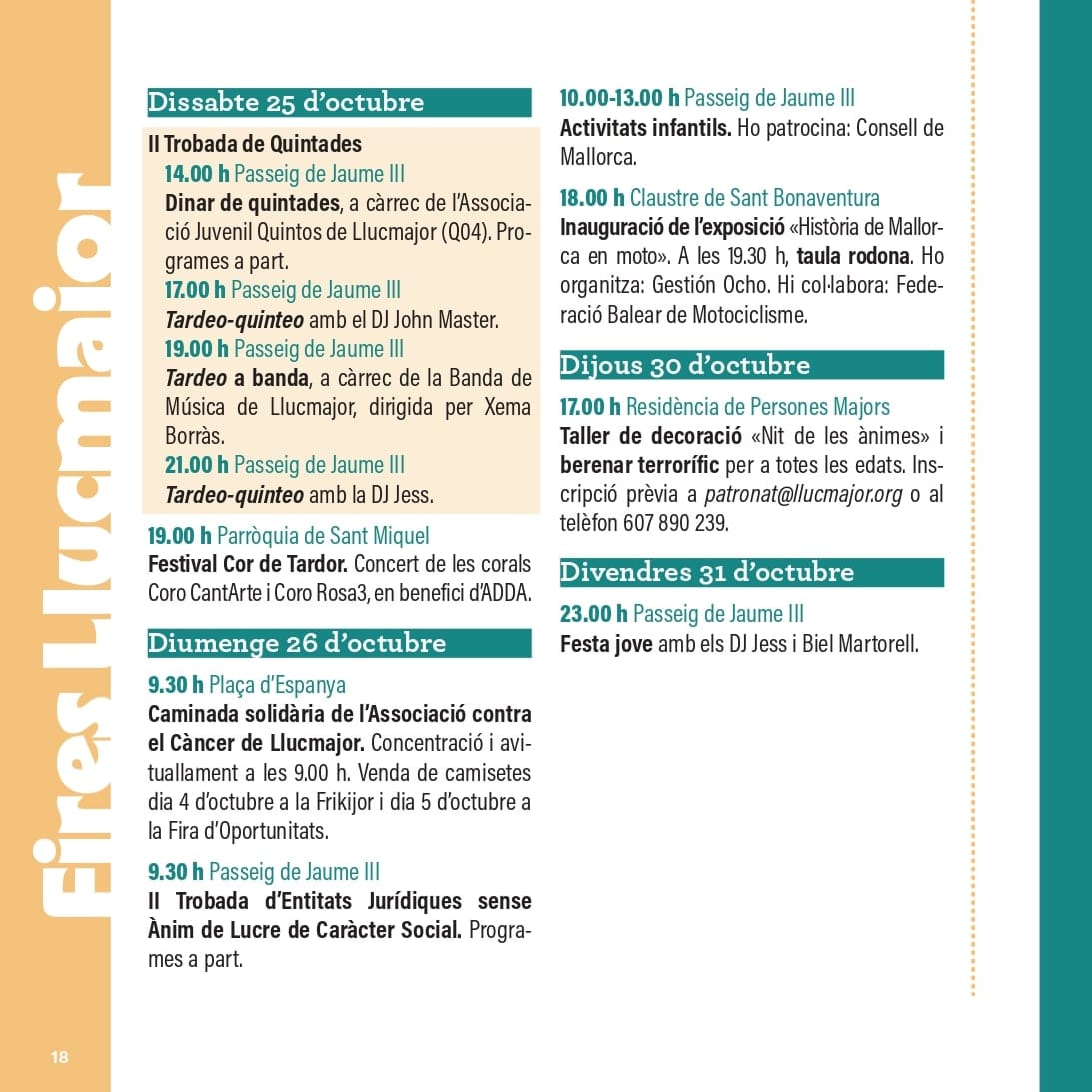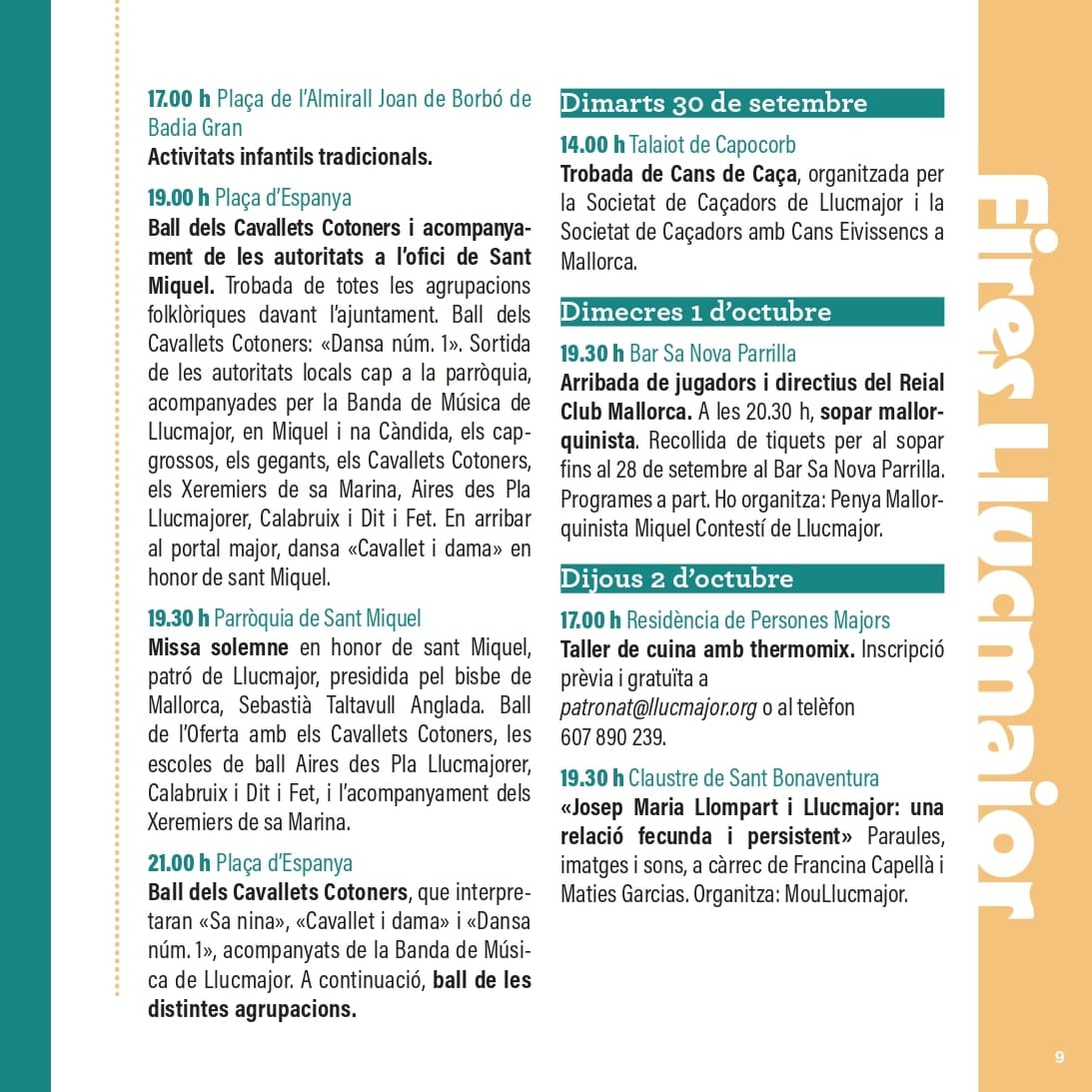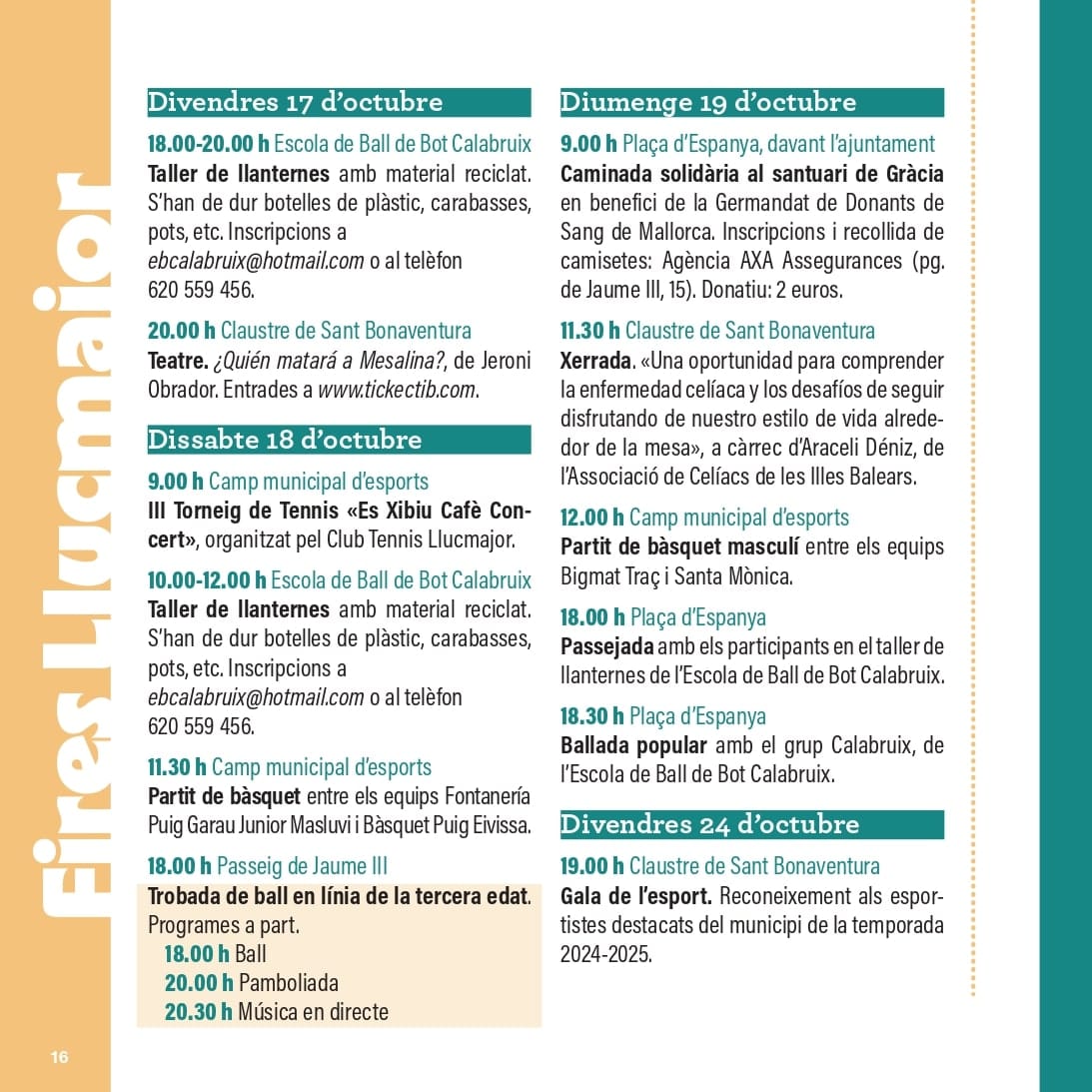- Fri 10 – Sun 12 Oct – XLV Mostra Llucmajorera (exhibitions, tastings, workshops)