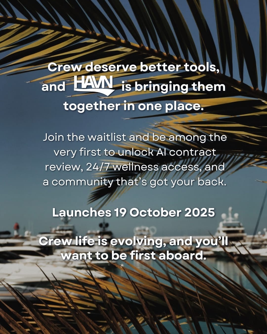 Be among the first to experience how HAVN is transforming life ashore for crew welfare – a new platform built to support your health, balance, and everyday access.