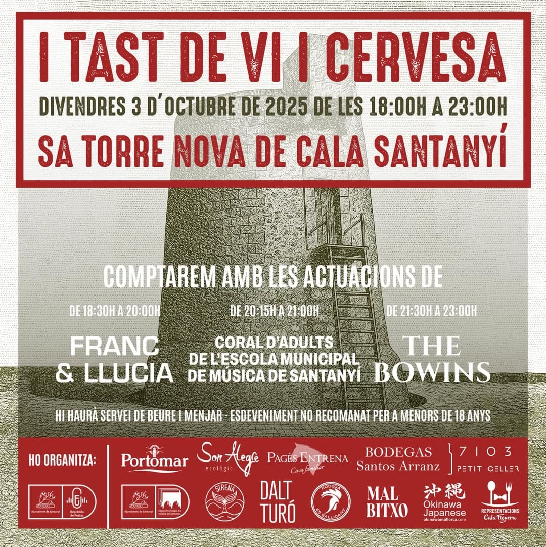 On Friday, October 3, 2025, Sa Torre Nova becomes the setting for the first edition of Tast de Vi i Cervesa — an evening of flavours, live music, and sea views. From 18:00 to 23:00, enjoy tastings of local wine and craft beer in a unique coastal atmosphere.