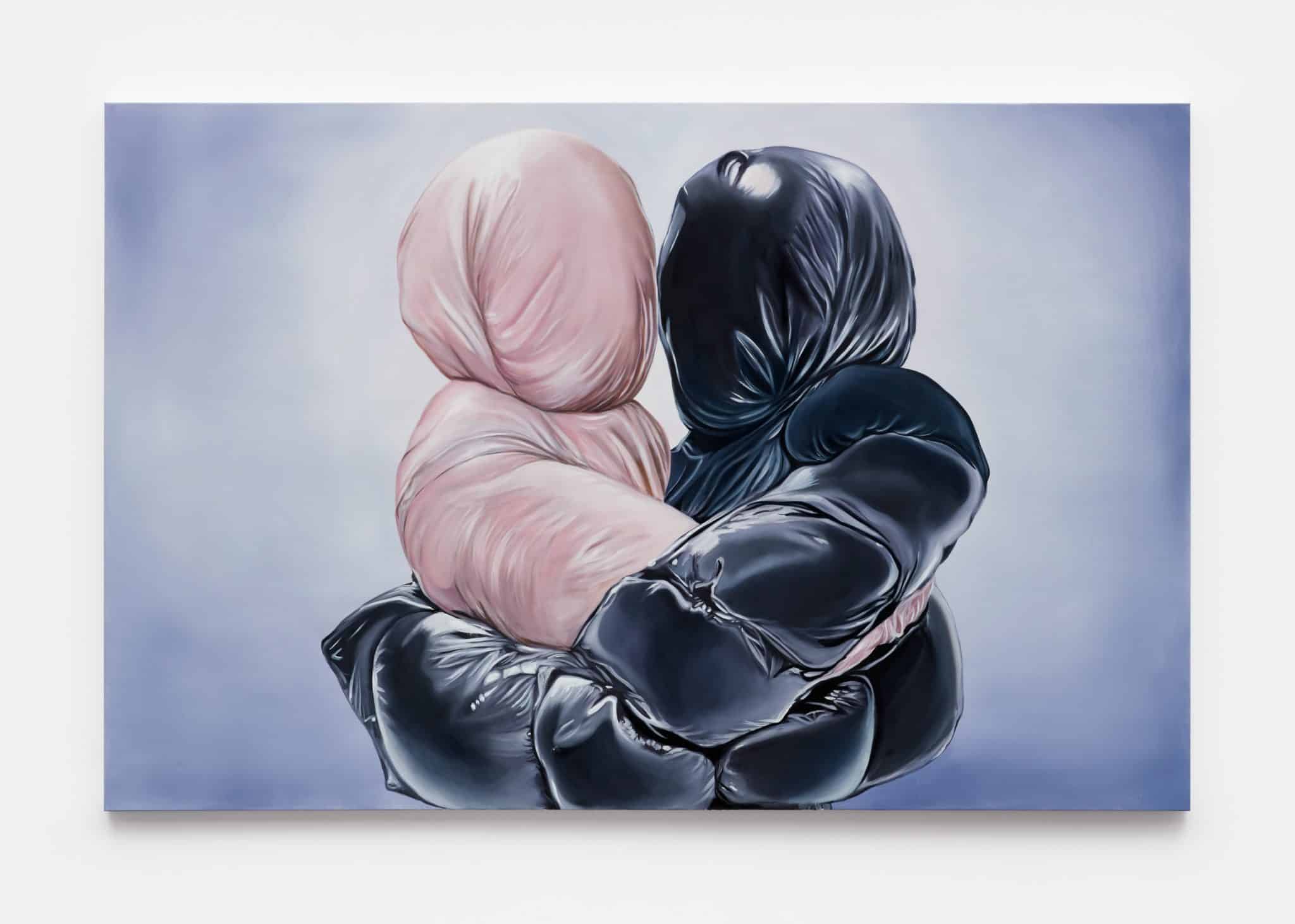 Multidisciplinary artist Charlie Stein explores authenticity in the age of infinite simulation, where bodies, markets, and images strive to fabricate aura. Her luminous, surreal paintings — padded lovers, latex torsos, gloved hands — hover between fetishistic and familiar, archiving fleeting sensations of intimacy and pressure.