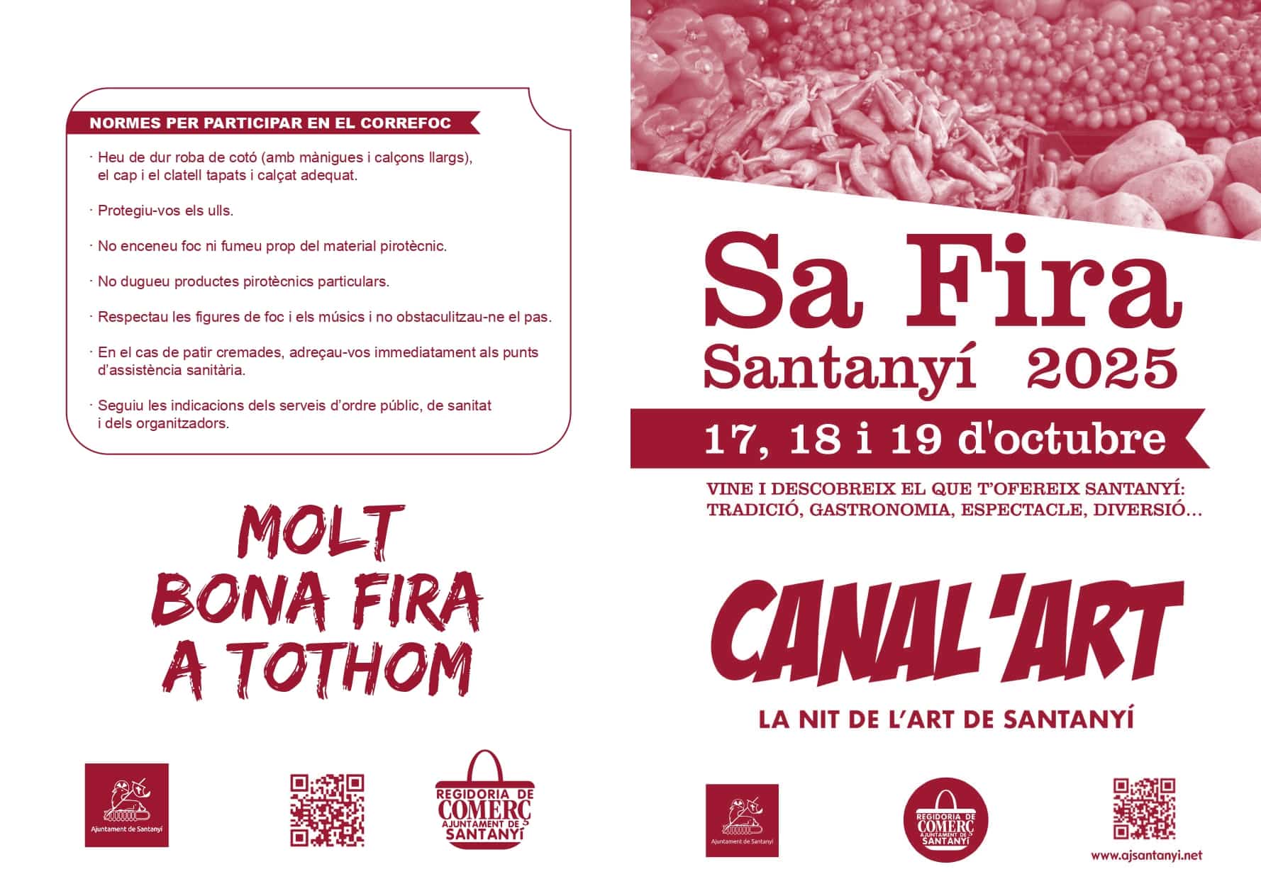 This weekend, Santanyí celebrates its big annual fair, blending art, tradition, gastronomy, and community spirit. From the long-awaited Canal’Art to traditional parades, culinary showcases, live music, and fiery correfocs, it’s one of the island’s most vibrant autumn events.