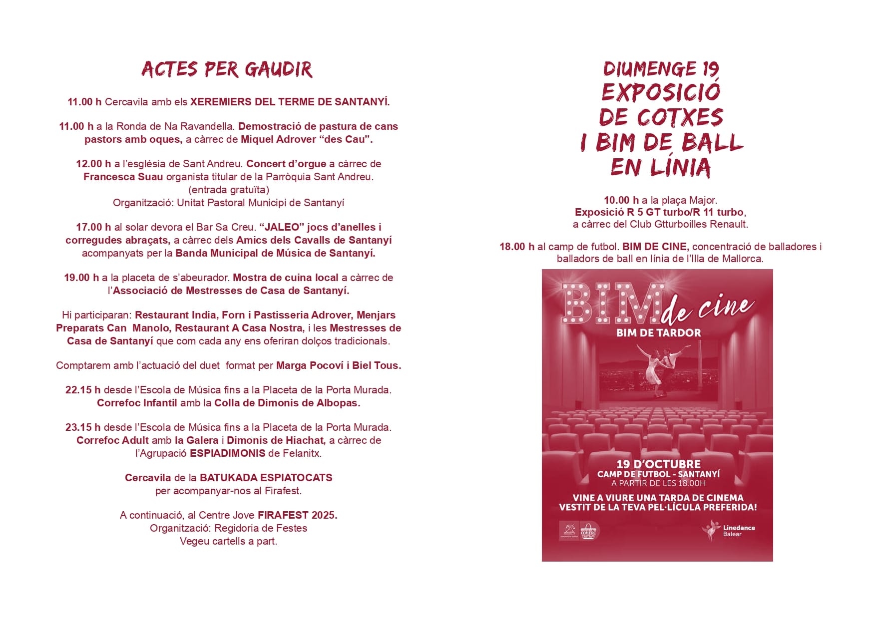 🐎 17:00 – “Jaleo” equestrian games and fun races, organized by Amics dels Cavalls de Santanyí with live music from the municipal band.