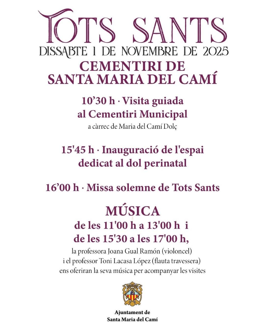 As tradition marks, Santa Maria del Camí will once again honour Tots Sants with a morning of remembrance, reflection, and gentle music at the town’s cemetery.